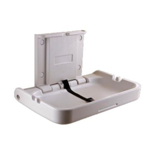Mesa cambia bebés fabricada en plÔstico polietileno y equipada con cinturón de seguridad para colocar a pared.