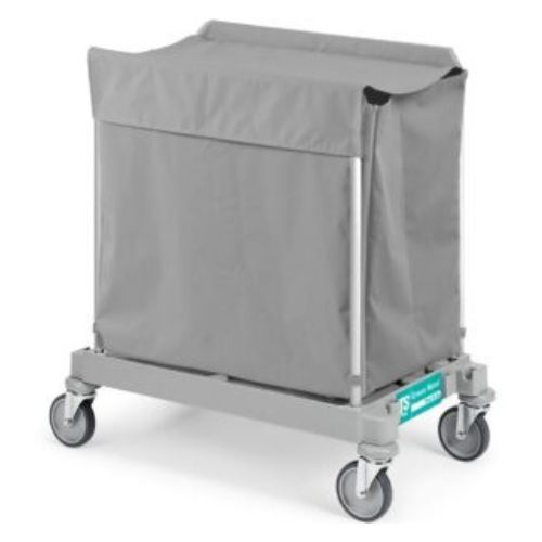 Carro de lavandería profesional con bolsa plastificada de 200 L, ideal para hoteles, hospitales y centros de limpieza. Su diseño robusto, ergonómico y modular permite enganchar varios carros para facilitar el transporte. Fabricado con materiales reciclados, combina sostenibilidad y funcionalidad.