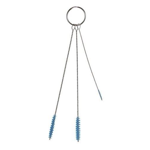Juego compuesto por 3 cepillos escobillones fabricados en poliéster y acero inoxidable para la limpieza de boquillas muy pequeñas.